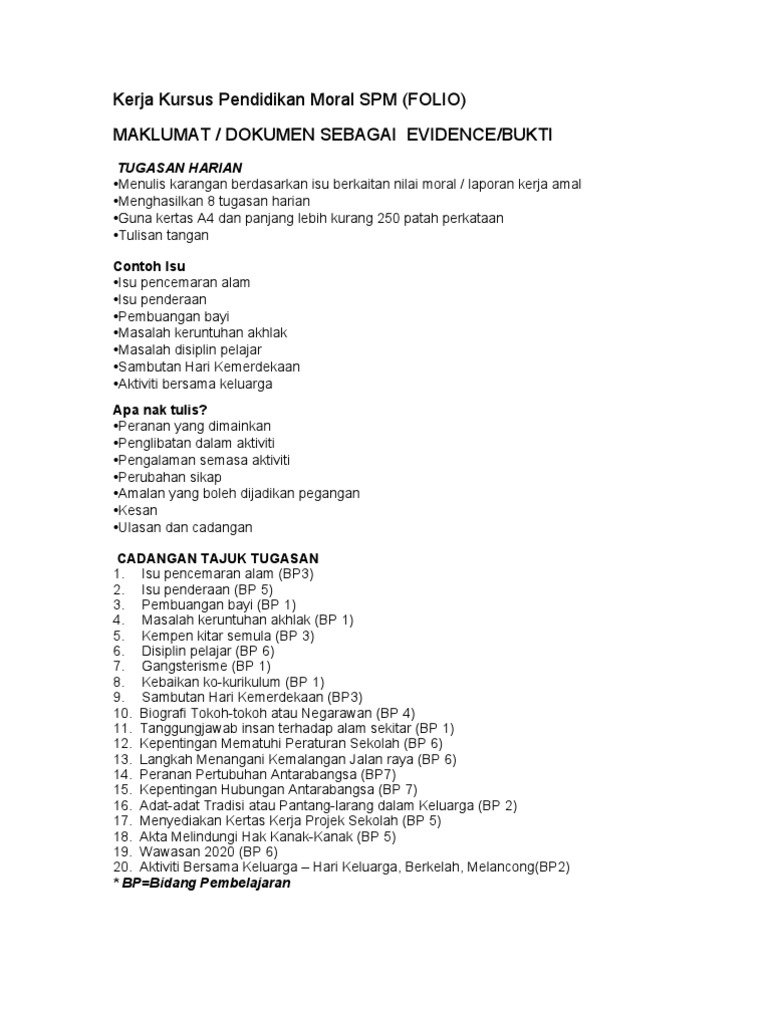 Kesan implikasi rasuah terhadap. Kerja kursus pendidikan moral spm folio maklumat dokumen sebagai â evidencebukti â tugasan harian âmenulis karangan berdasarkan isu berkaitan nilai. Aktiviti kerja amal iaitu membantu menjaga anak jiran telah membuatkan saya bersaya insaf tentang kepentingan menjalin hubungan yang erat dengan jiran.